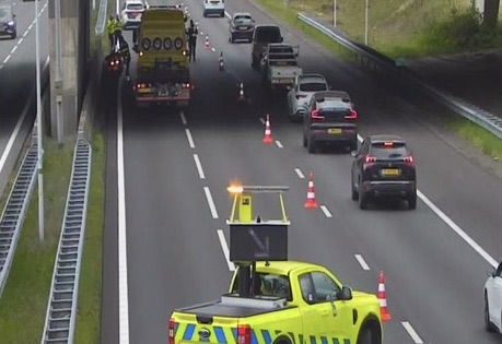 Voor de veiligheid zijn twee rijstroken afgesloten. Een berger start binnenkort met het bergen van het voertuig. Na afronding van de werkzaamheden wordt de weg weer vrijgegeven.