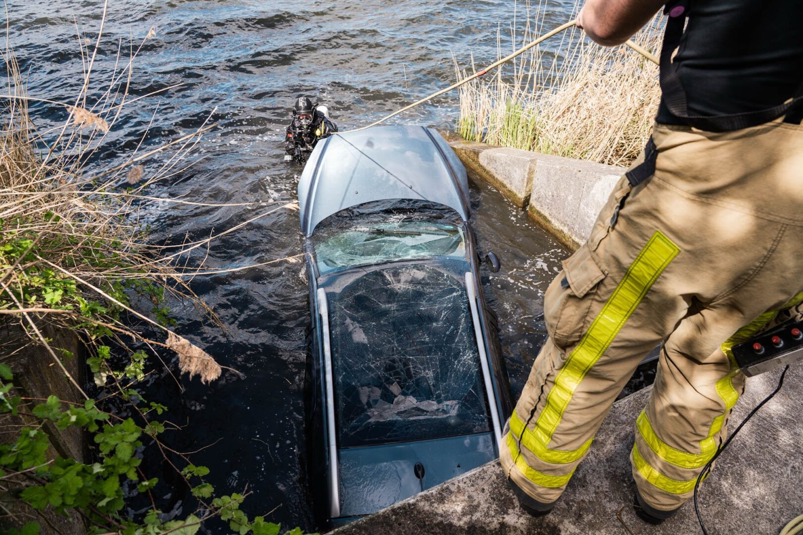 Na een uitgebreide zoektocht is uiteindelijk niemand aangetroffen. Hoe de auto in het water terecht is gekomen, is niet bekend.