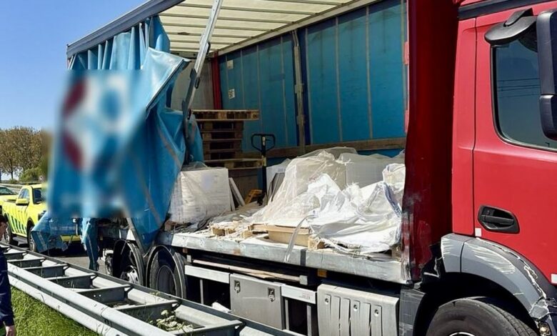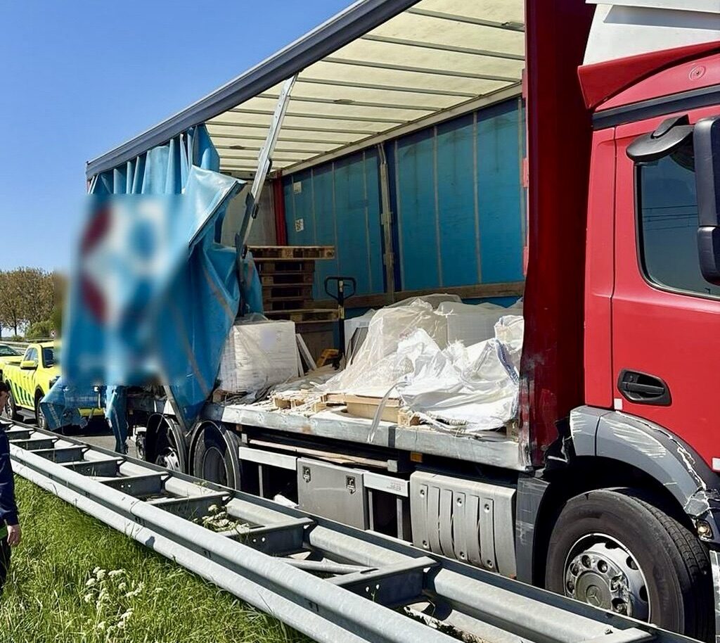 Snelweg dicht en flinke ravage na ongeval met vrachtwagen