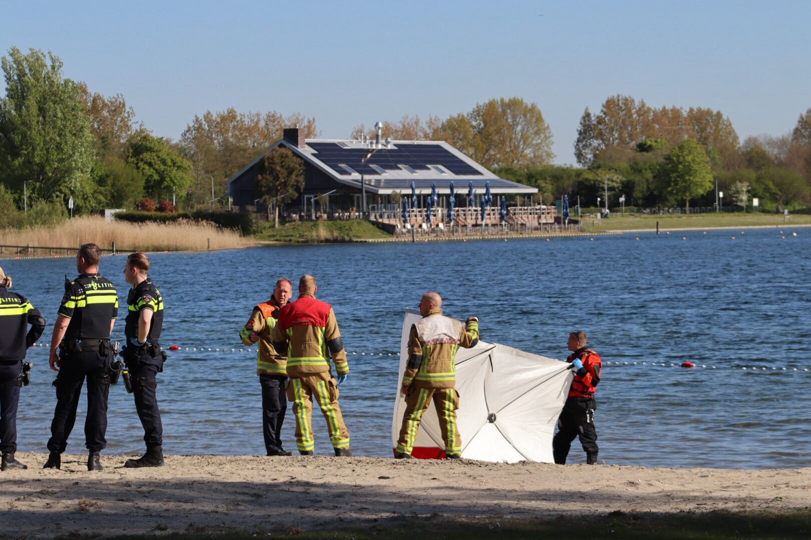 Op het strand Zuid van de Toolenburgerplas in Hoofddorp is woensdagochtend een overleden persoon aangetroffen.