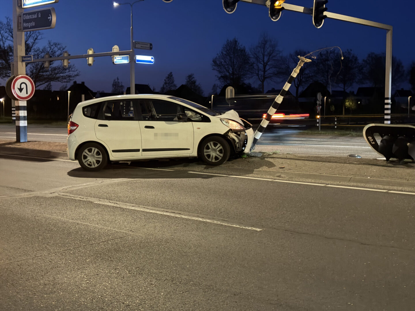 Automobilist rijdt verkeerslicht uit de grond, installatie buiten werking