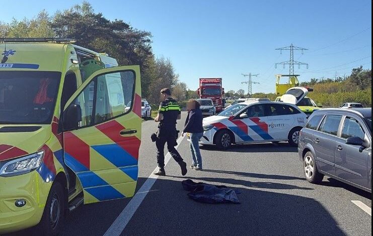 Snelweg dicht na ongeval met motorrijder; 50 minuten file