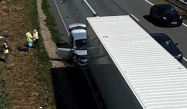 Ongeval tussen auto en vrachtwagen zorgt voor flinke vertraging