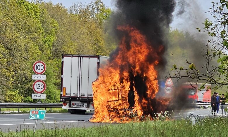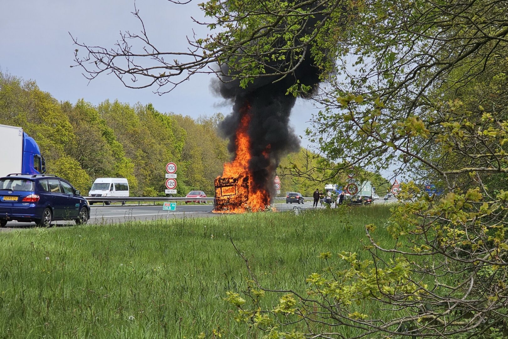 Enorme vuurzee verwoest caravan op snelweg