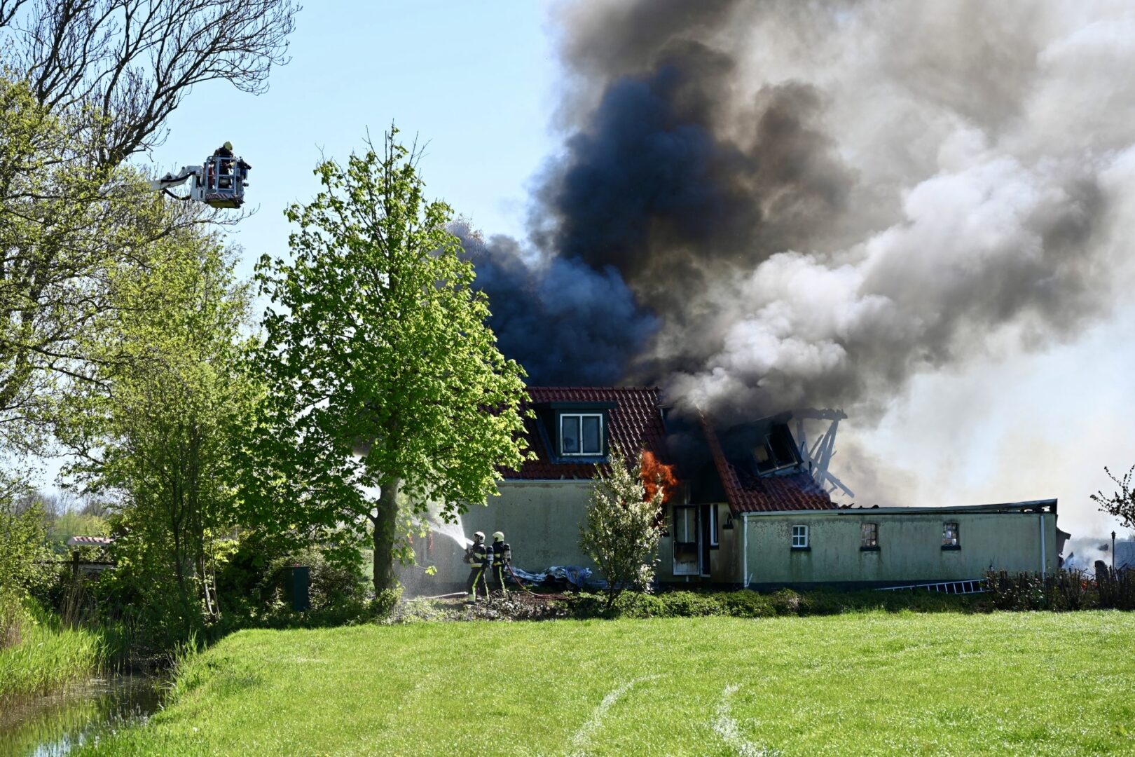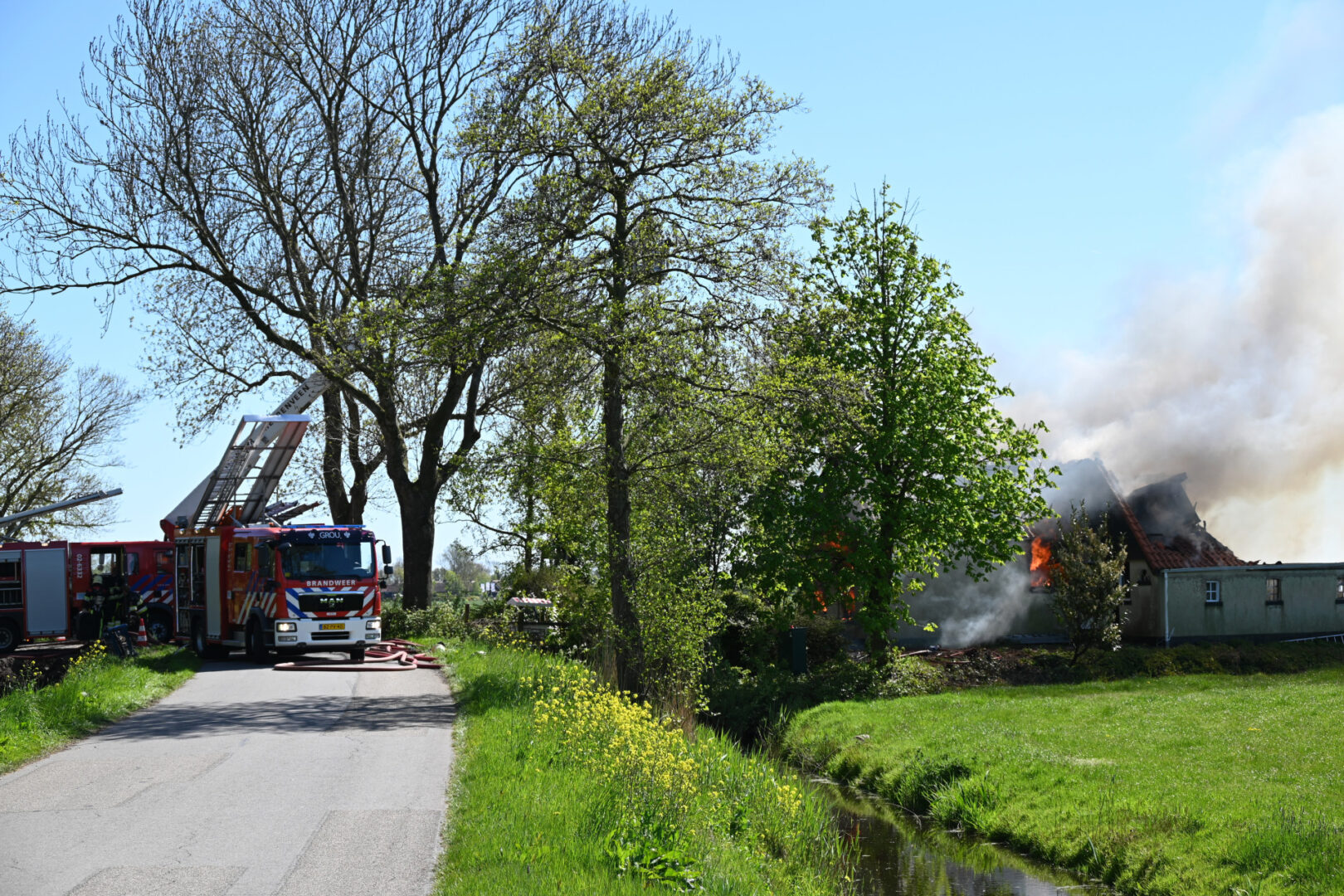 Grote uitslaande brand in woonboerderij, brandweer massaal ter plaatse