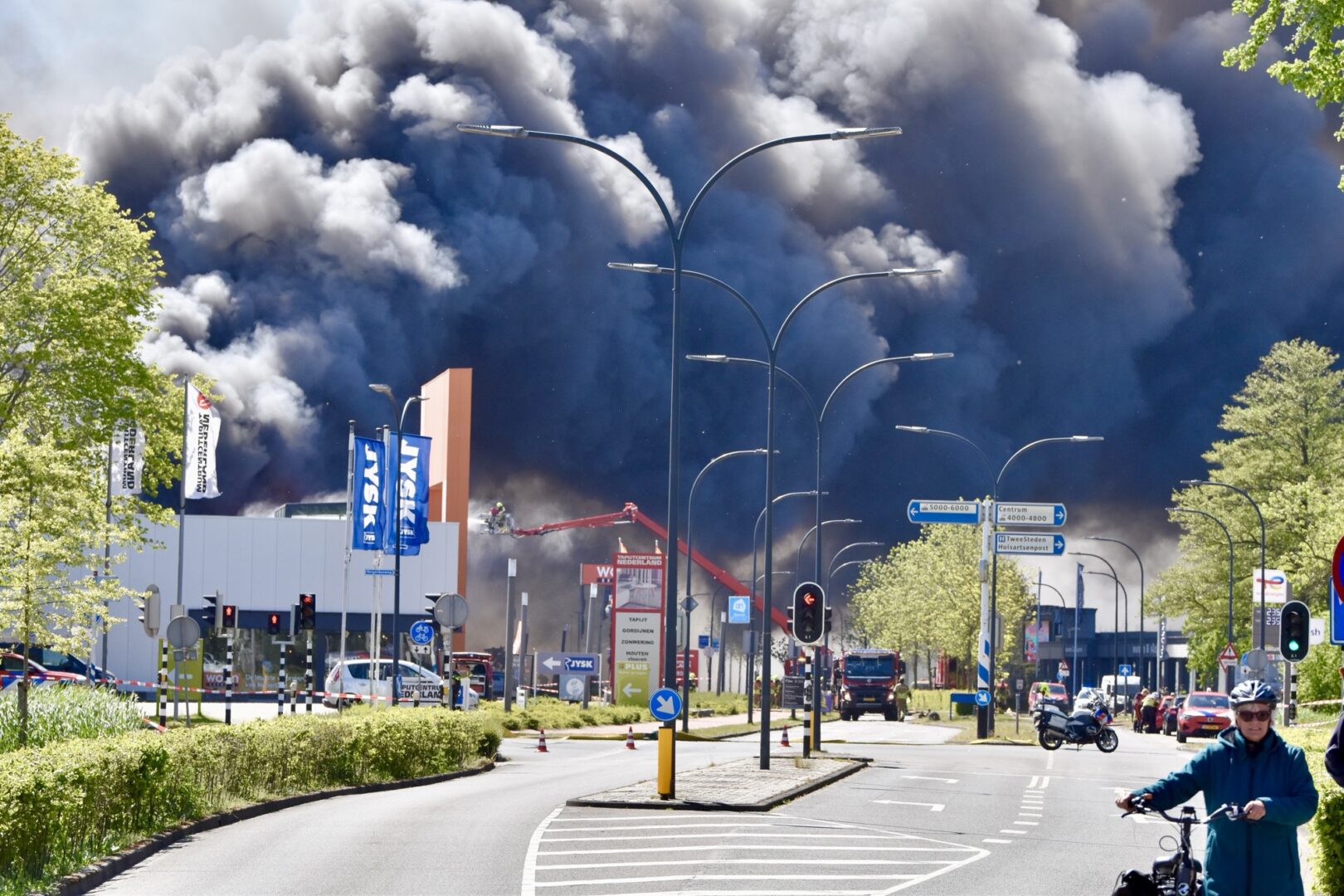 Enorme vuurzee verwoest meerdere winkels; meerdere brandweerpelotons ingezet