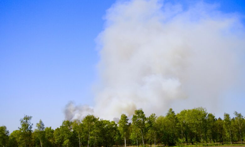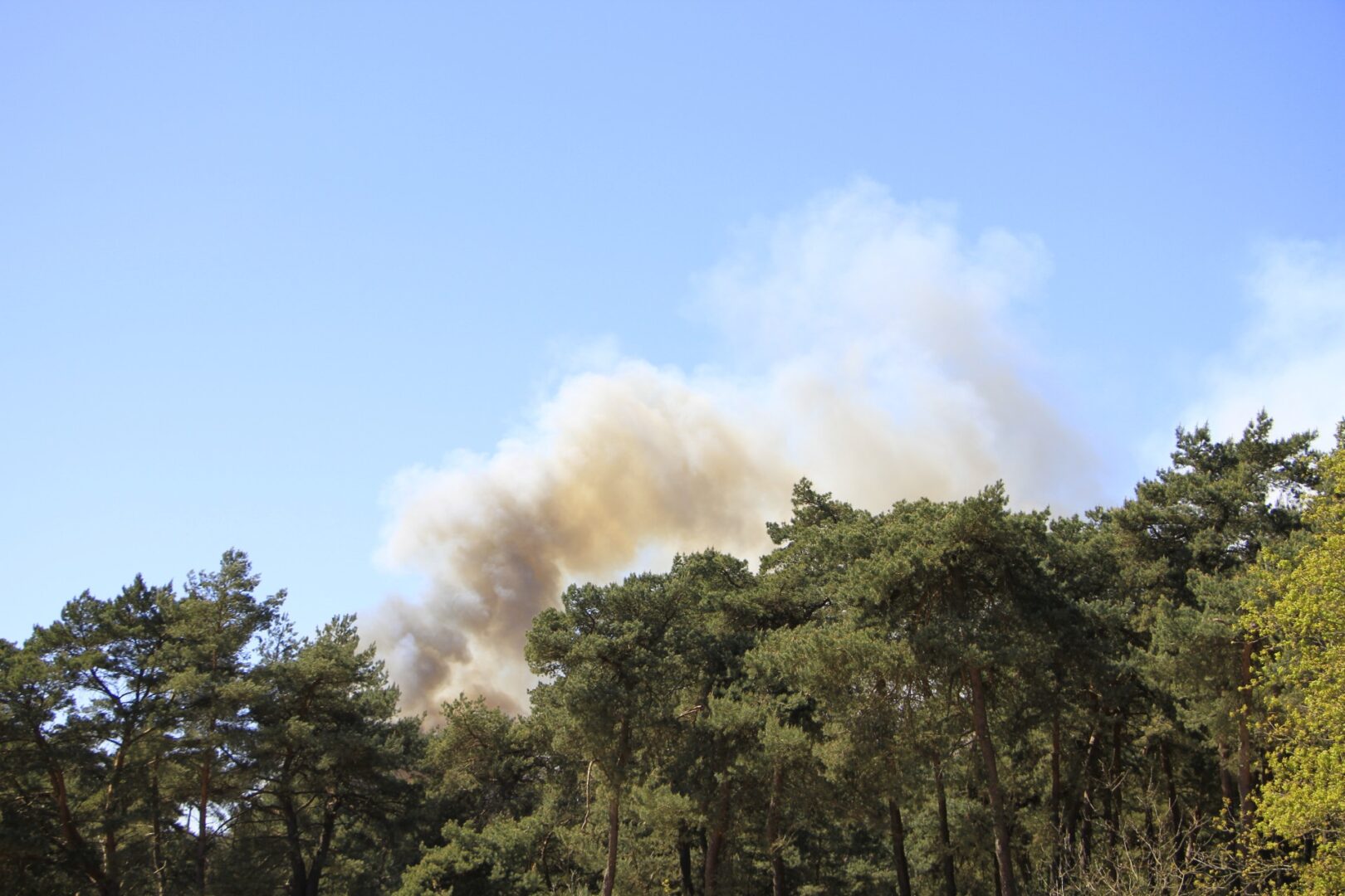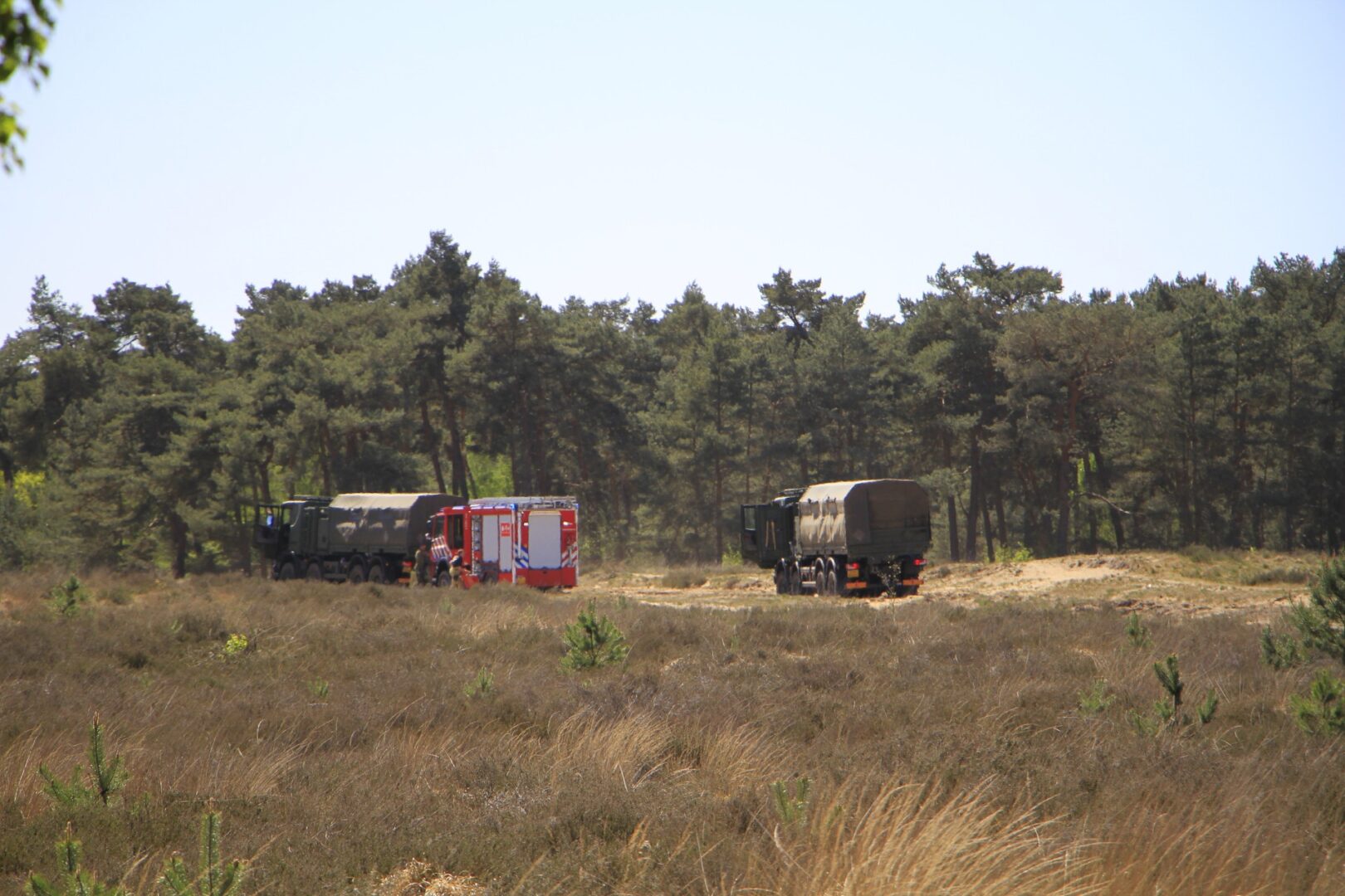 De brandweer schaalde binnen enkele minuten op naar het sein ‘zeer grote brand’ vanwege de snelle uitbreiding van het vuur. De brand woedt in de buurt van een oefenterrein van Defensie. Dikke rookwolken stijgen snel op en zijn in de wijde omgeving te zien.