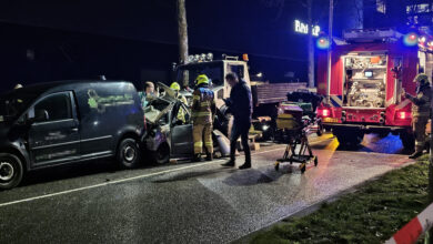 Zeer ernstig ongeval in Veenendaal, auto geplet tussen twee voertuigen