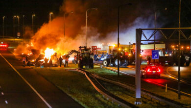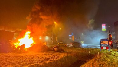 Boeren blokkeren oprit A12 Veenendaal en stichten brand