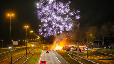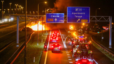 Boeren steken vuurwerk af en stichten brand op A50 Apeldoorn
