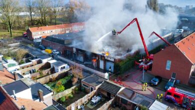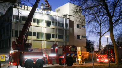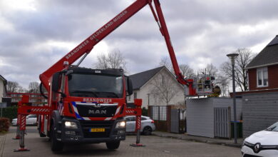 Loshangende gevelplaten oude Centraal Beheer gebouw verwijderd door brandweer Apeldoorn