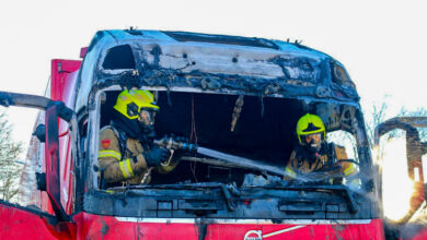 Cabine van vrachtwagen volledig uitgebrand Kanaal Noord Apeldoorn