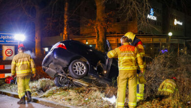 Automobilist ramt lantaarnpaal en belandt rechtop in sloot Ugcheleseweg Ugchelen