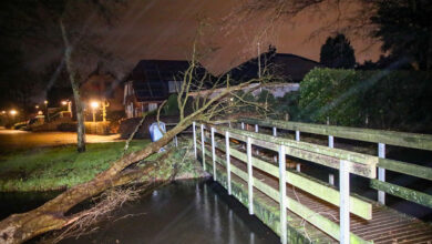 Storm Henk waait dikke boom om bovenop bruggetje Tonissenlaan Ugchelen