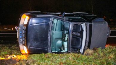 Automobilist vliegt uit de bocht en belandt op zijkant afrit A1 Ugchelen