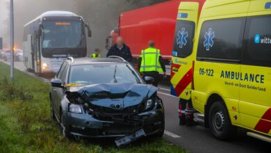 Vrouw gewond na kettingbotsing tussen touringcar en 3 auto’s Amersfoortseweg Apeldoorn