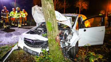 Automobilist botst frontaal tegen boom Woeste Hoefweg Hoenderloo