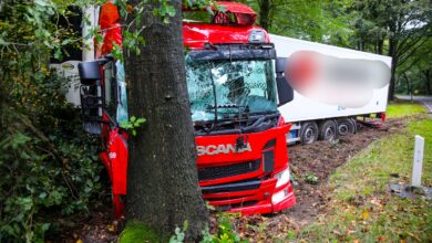 Vrachtwagenchauffeur botst frontaal tegen boom N795 Epe
