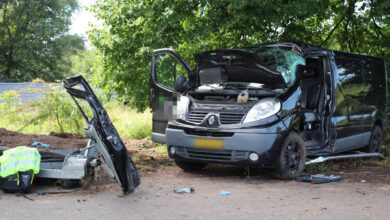 Busje raakt van de weg en ramt boom Wilpsedijk Wilp