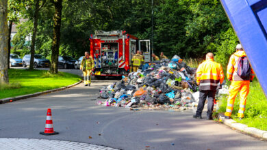 Brand in vuilniswagen Bouwmeestershoeve Apeldoorn, afval op straat gedumpt