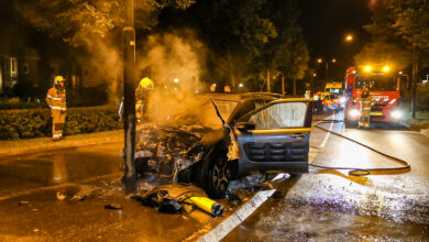 Auto vliegt in brand na crash tegen lantaarnpaal Laan van de Mensenrechten Apeldoorn