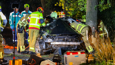 Man ruim uur bekneld in auto na zwaar ongeval Ooldselaan Laren