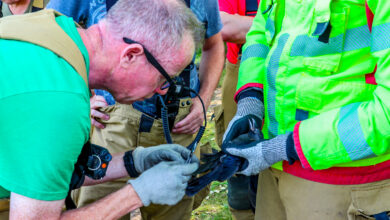 Jonge kraai vast in boom met visdraad, Apeldoornse brandweer redder in nood