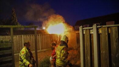 Felle brand in achtertuin woning slaat over naar schuurtje Diepenbrocklaan Apeldoorn