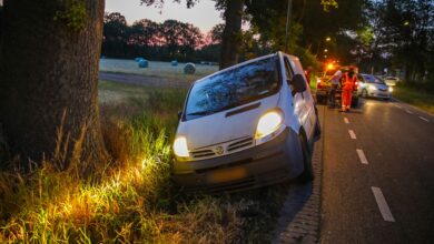 Bestelbus wijkt uit voor ambulance en belandt in droge sloot Hansengraaf Beekbergen