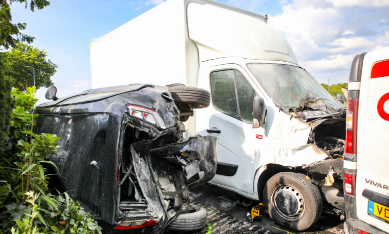 Snelweg dicht en 90 minuten file na ongeval met meerdere voertuigen