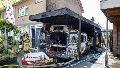 Camperbus volledig uitgebrand onder carport Anklaarseweg Apeldoorn