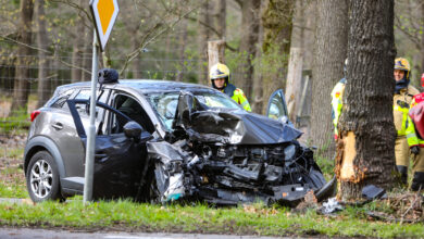 Zwaar ongeval N301 Nijkerk, automobilist botst frontaal tegen boom