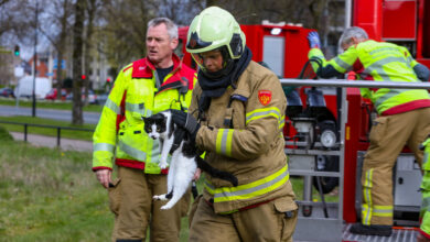 Apeldoornse brandweer red jonge kat uit boom Europaweg Apeldoorn
