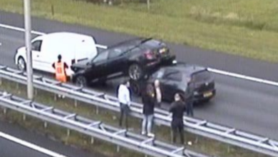 Auto belandt bovenop andere auto bij ongeval A1 Terschuur