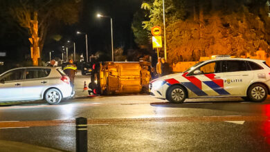 Automobilist belandt op zijkant na aanrijding met paaltje Laan van Fasna Vaassen