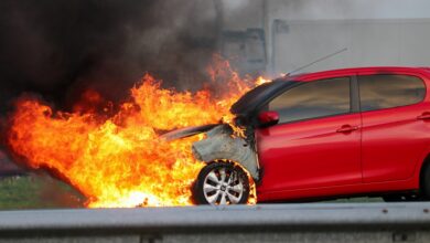 Vlammen slaan uit rijdende auto A50 Klarenbeek