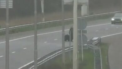 Man loopt met koffers over A50 bij Apeldoorn en steekt over