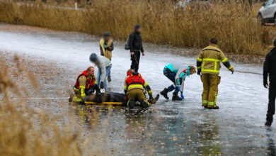 Brandweer red gewonde schaatser van ijs Beemte Broekland