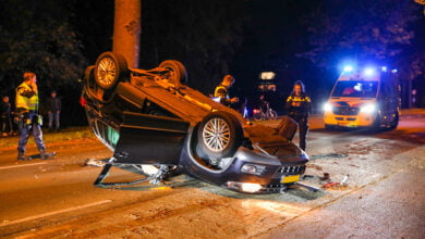 Auto op de kop na ongeval Deventerstraat Apeldoorn