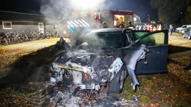 Auto vat vlam op parkeerplaats Café Klaarbeek in Klarenbeek