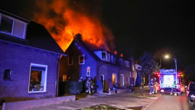 Forse woningbrand Zinkweg Apeldoorn, vlammen slaan metershoog uit dak