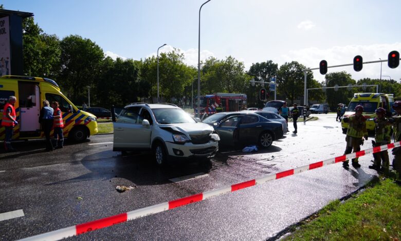 Twee auto’s botsen op kruising, bestuurder naar ziekenhuis