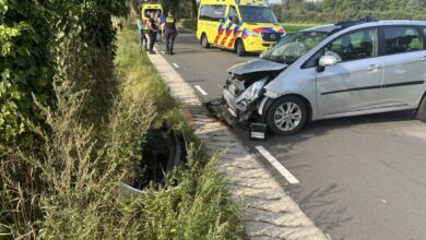 Enorme schade na fors ongeval op kruispunt, beide auto’s zwaar beschadigd