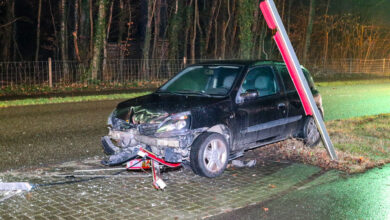 Bestuurder onder invloed rijdt met vals kenteken informatiebord in Beekbergen aan diggelen