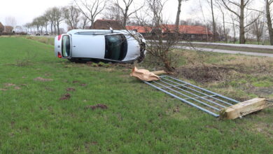 Automobilist belandt op zijkant in weiland na ongeval Geerstraat Vaassen