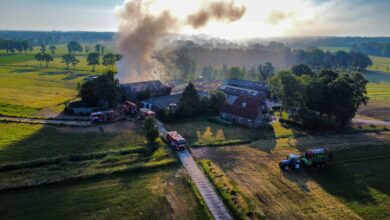 Grote brand in hooischuur Langedijk Hall, rook in wijde omtrek zichtbaar